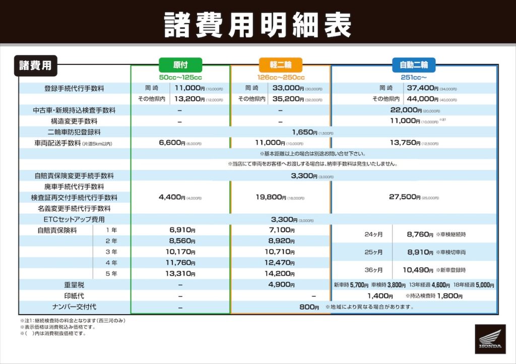- 保証内容 / Honda126cc以上の新車国内モデル全機種。当店で法令点検を実施した車両。当店でお買い上げの車両(保証書と車両名義が同一)